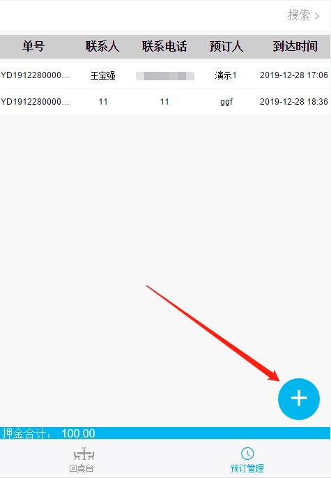 在手机、平板收银端点击更多à预定管理即进入下图页面,再点击右下角“+”号